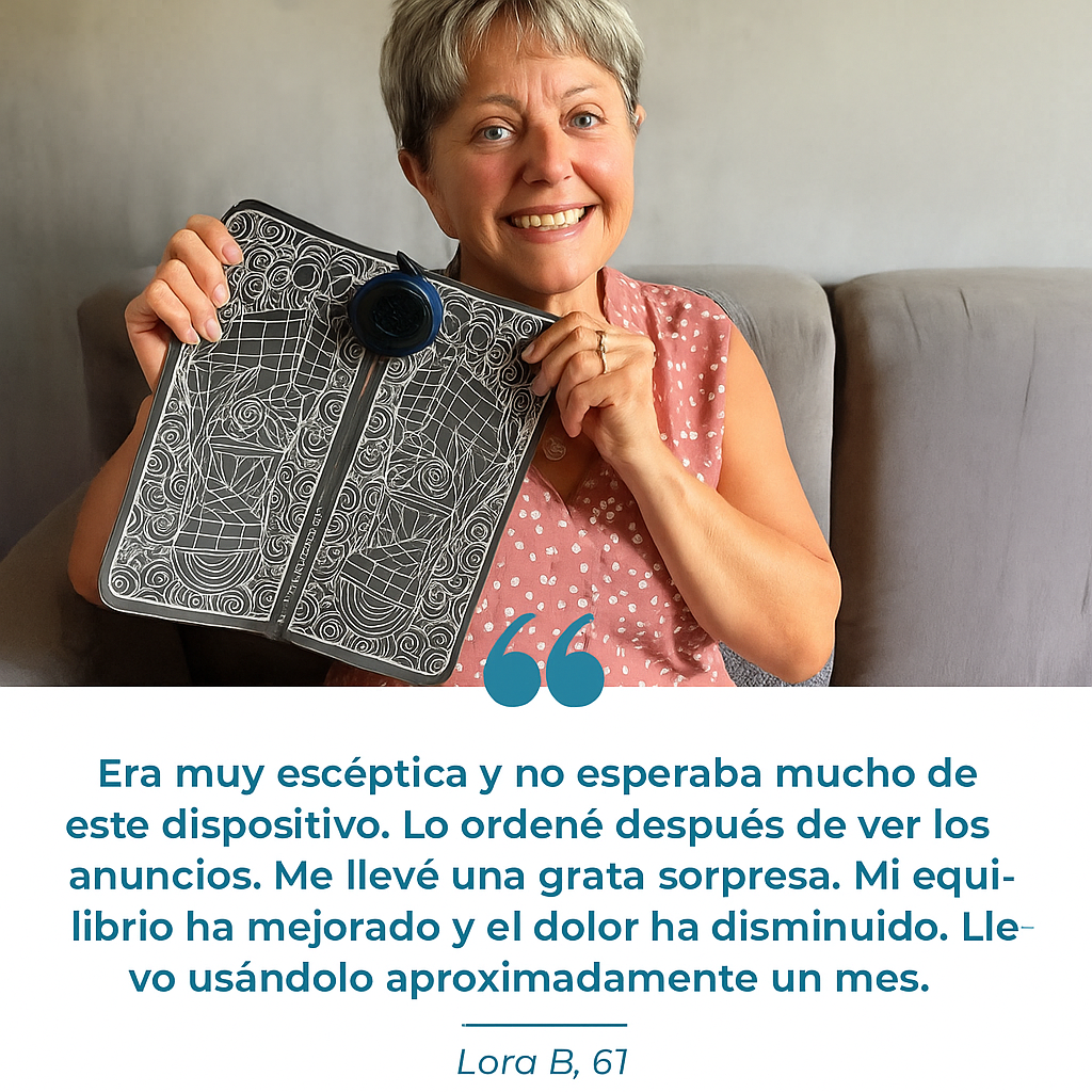 La fisioterapia me estaba ayudando, pero me estaba dejando sin dinero. Relieva™ me dio el mismo progreso, sin las interminables citas. Mi equilibrio ha mejorado y camino con más confianza cada día.