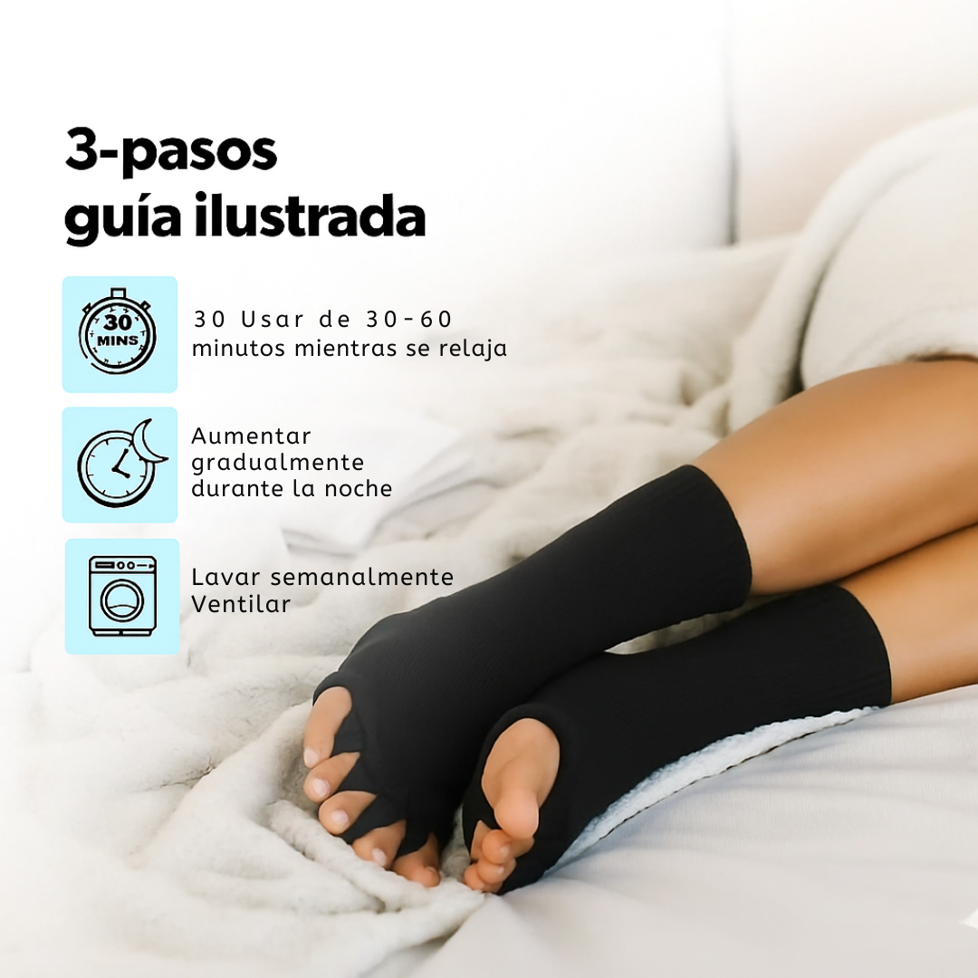 Coloca las MedSock® asegurándote de que se ajusten firmemente sin apretar el tobillo ni la planta del pie.